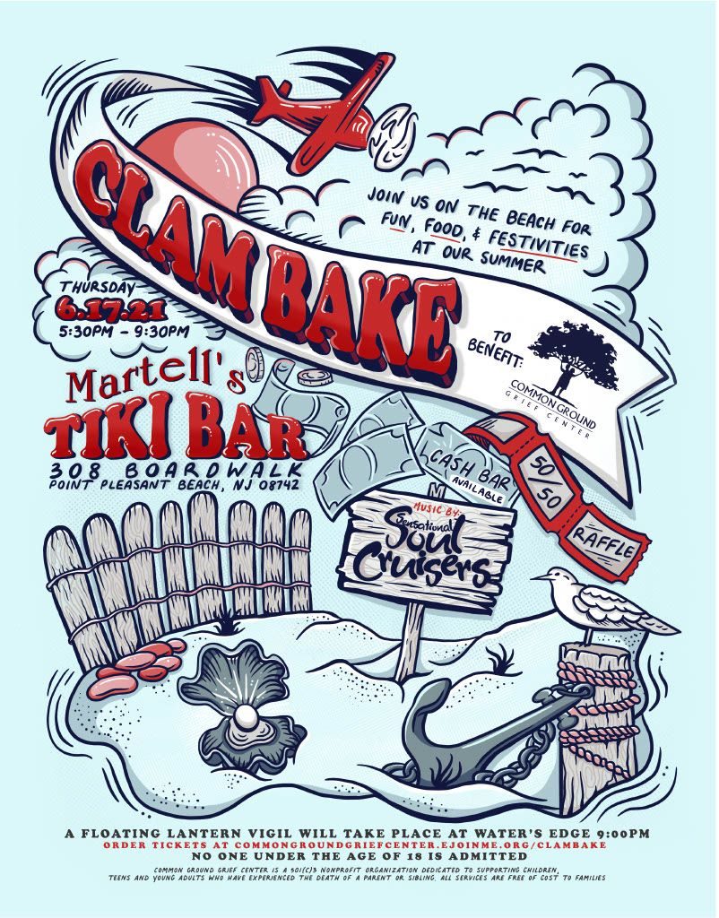 2021 Clambake Posted by Lynn Snyder on February 18, 2021 Join us on the beach for fun, food & festivities at our summer Clam Bake! Thursday June 17th from 5:30pm – 9:30pm. CLICK HERE TO REGISTER NOW!